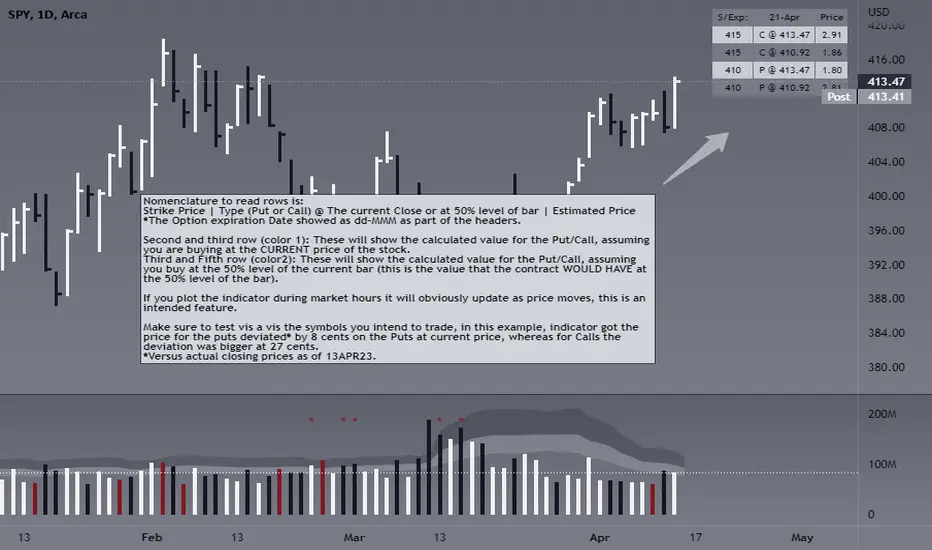 Option Strike Price | Type of Option (Put or Call) @ The current Close or at 50% level of bar | Estimated Price