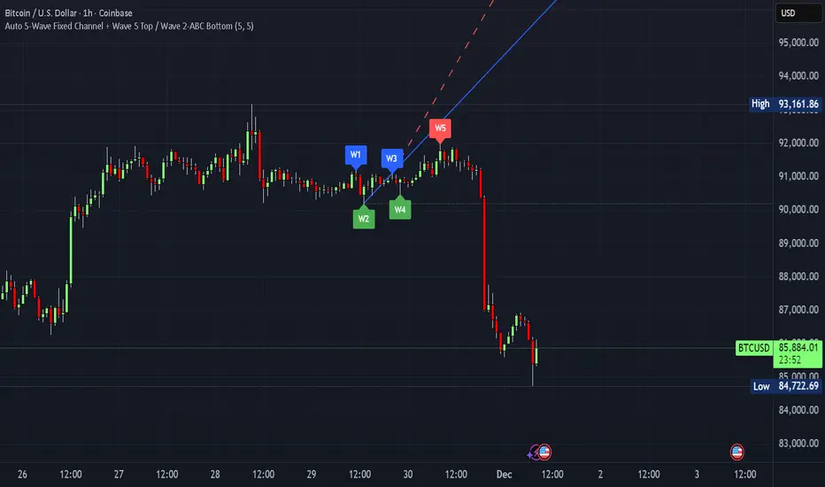 Auto 5-Wave Fixed Channel + Wave 5 Top / Wave 2-ABC Bottom