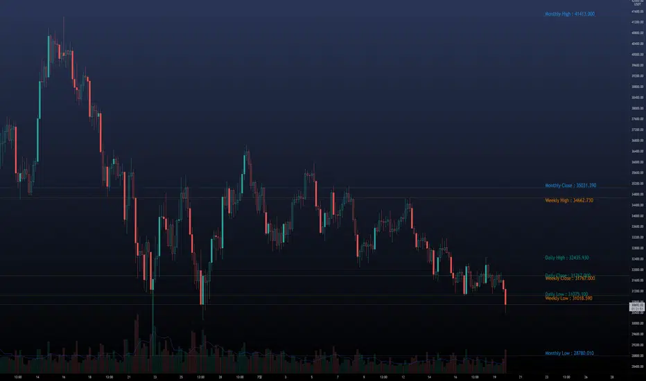 So, I made an indicator displays only the previous day, week, and month's high, low and close prices.