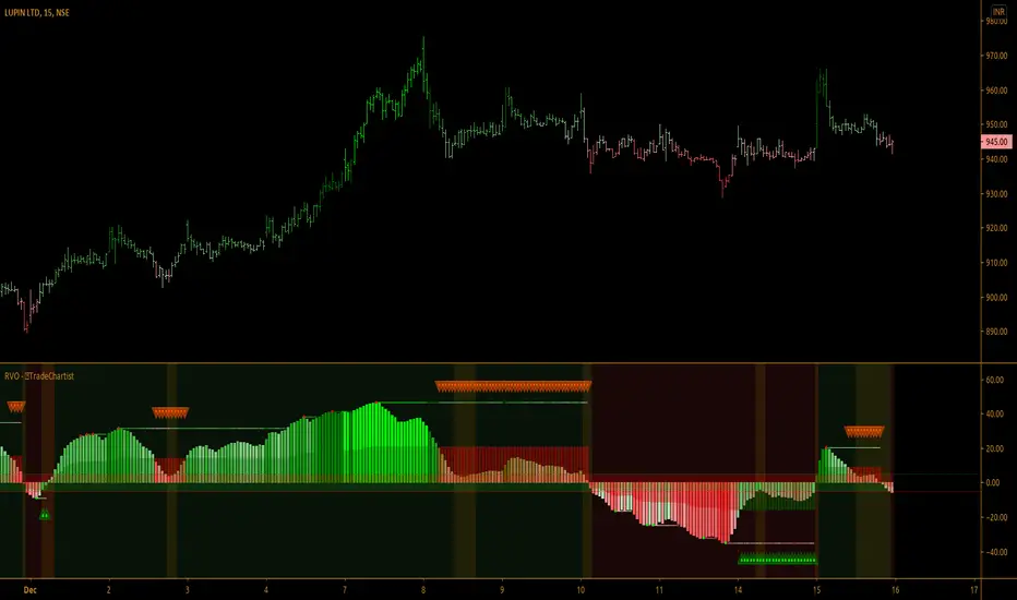 Relative Volatility Oscillator is a volatility based oscillator and works very well on Lower Time Frames on volatile assets. It uses one of five periods (34,55,89,144,233) to calculate relative volatility of the current bar with the volatility trend of one of the 5 periods from the settings, using percentile rank.