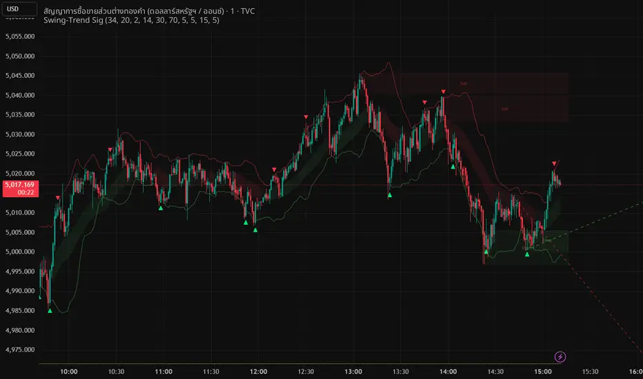 * **Swing Signals:** Buy/Sell arrow signals when price breaks the Swing bands, equipped with a special filter system for higher accuracy.