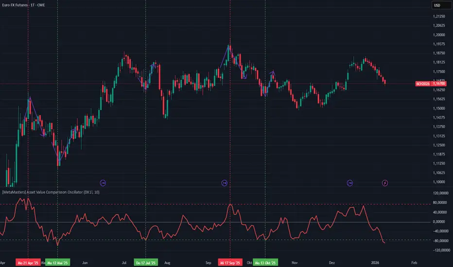 Overall, the Asset Value Comparison Oscillator helps traders spot when an asset appears cheap or expensive relative to another, adding a layer of fundamental insight to strengthen directional trading decisions.