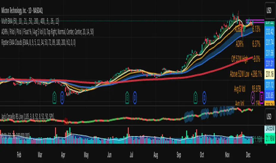 Swing Data - ADR% / RVol / PVol / Float % / Avg $ Vol (Mod)