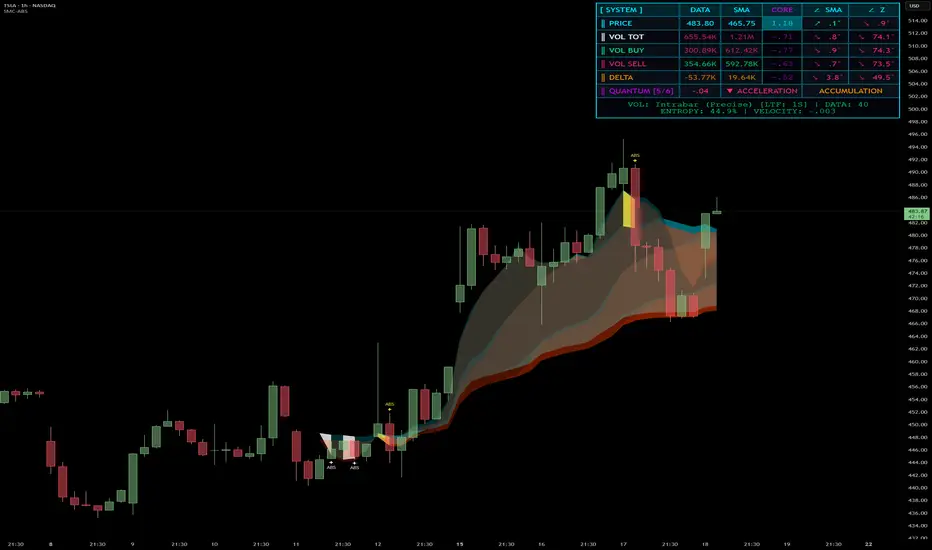 • Energy ribbons (bands): two split-volume VWMA ribbon sets - Buy-weighted (cyan) and Sell-weighted (magma).