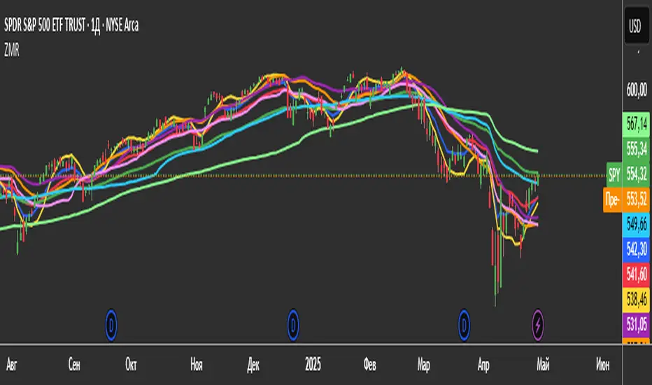 The "3 Zero Lag + 3 Moving Averages + 3 RVWAP" (ZMR) indicator combines three groups of tools for technical analysis.