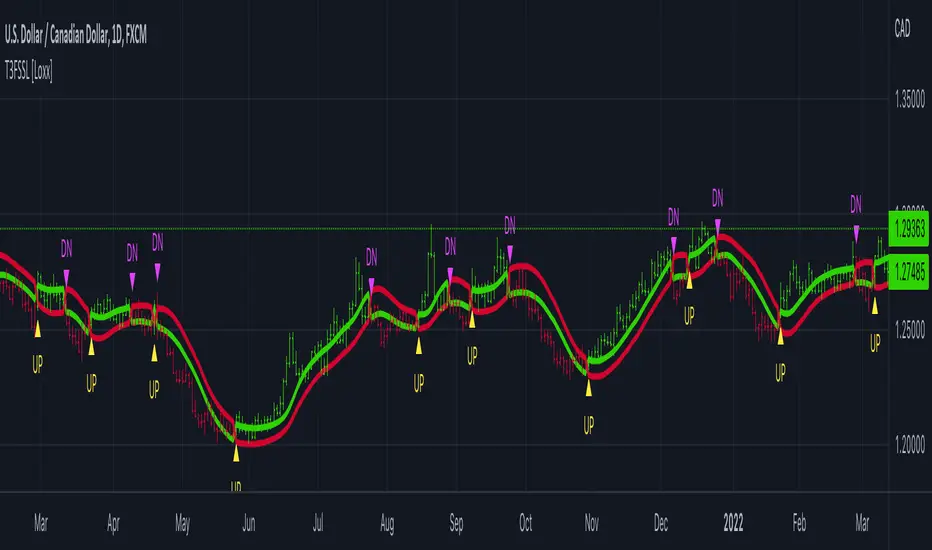 T3-Filterd SSL [Loxx] is an SSL indicator that is filtered with T3 moving average