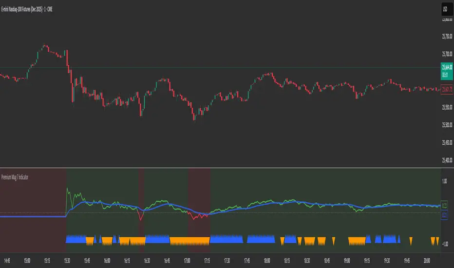 This indicator tracks the **real-time combined percentage change** of the *Magnificent 7* stocks — AAPL, MSFT, AMZN, NVDA, TSLA, META, and GOOGL — and transforms their collective trend into a clear, actionable signal.
