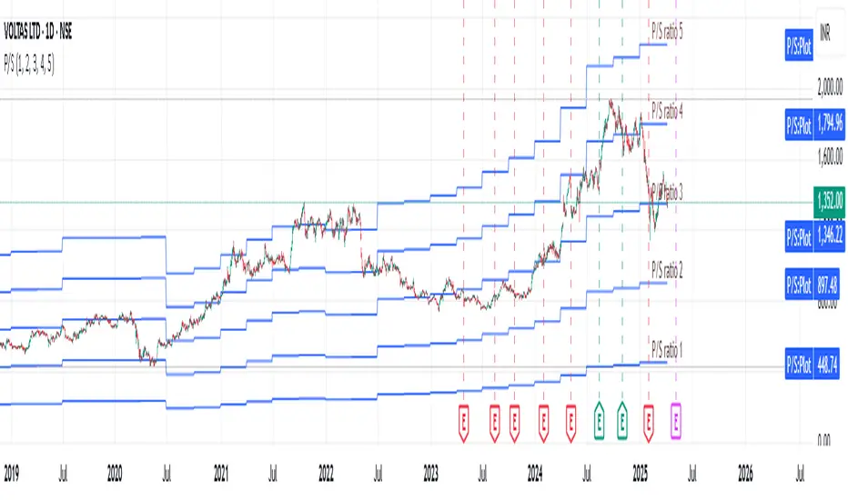 The Revenue Grid indicator helps traders and investors visualize a stock’s valuation by plotting horizontal lines based on its price-to-sales (P/S) ratio. This tool displays how the stock price compares to multiples of its total revenue per share, giving a clear perspective on valuation benchmarks.