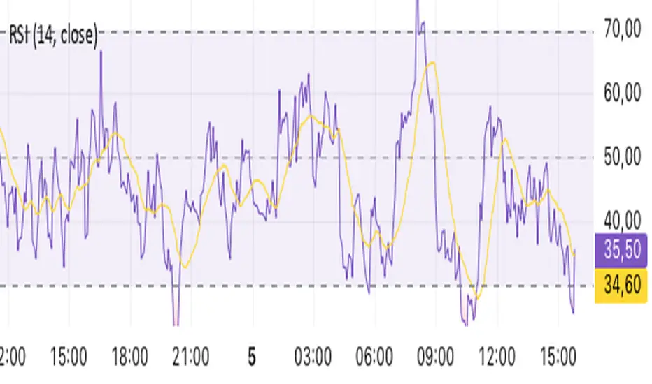 The RSI (14-period) acts as a momentum filter to avoid entering during exhausted moves: