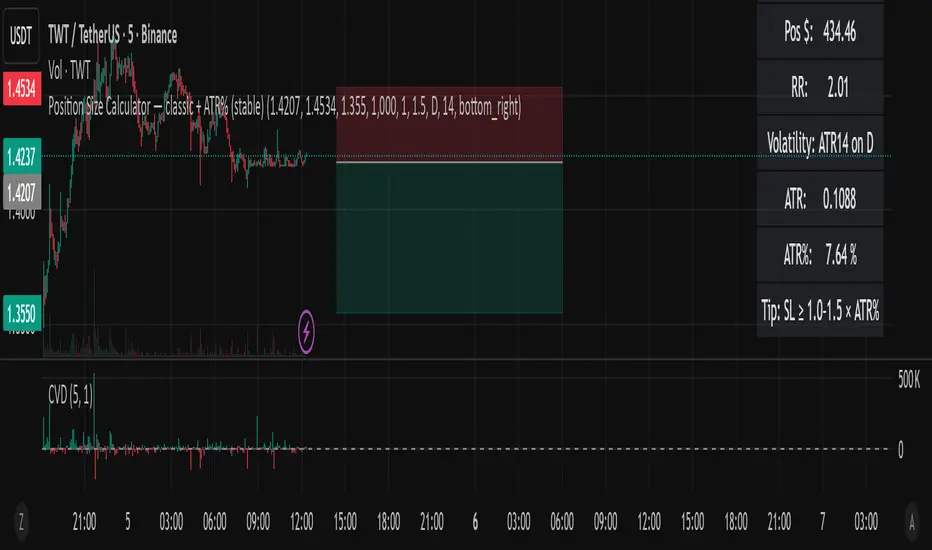Position Size Calculator — classic + ATR% (Ostin V.)