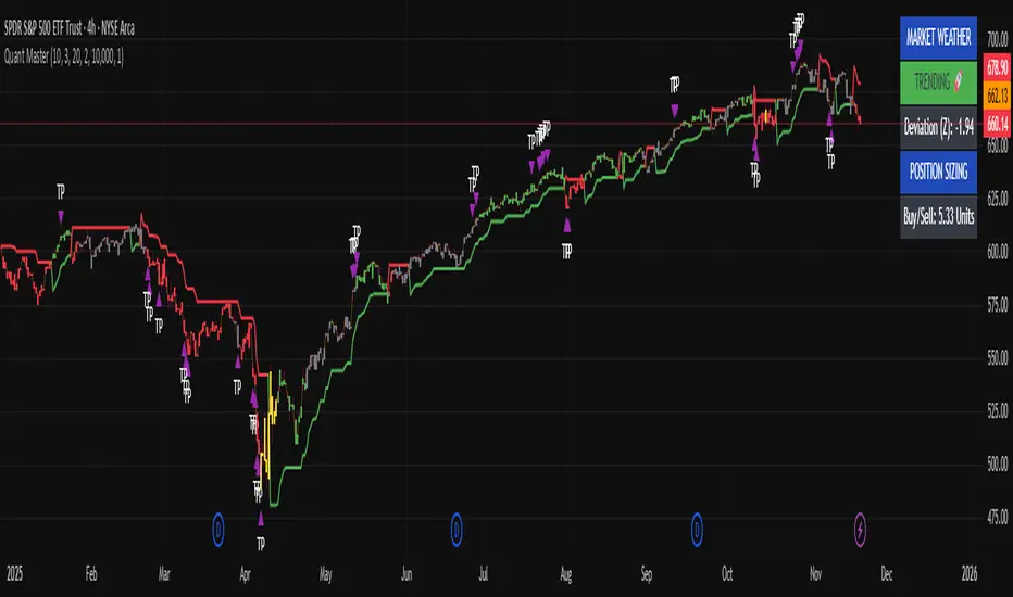 The Quant Master Supertrend is a professional tool that tells you when to enter, what the market is doing, and when to take profit. It combines three powerful concepts into clear visual signals.