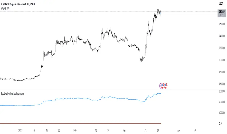 Difference between spot and derivative prices. With this indicator you can get an idea on how strong the market is.