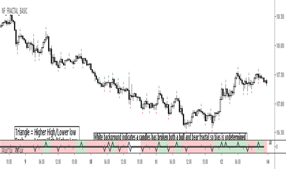 - Highlights areas on the chart where Higher Highs or Lower Lows are being created in terms of fractals