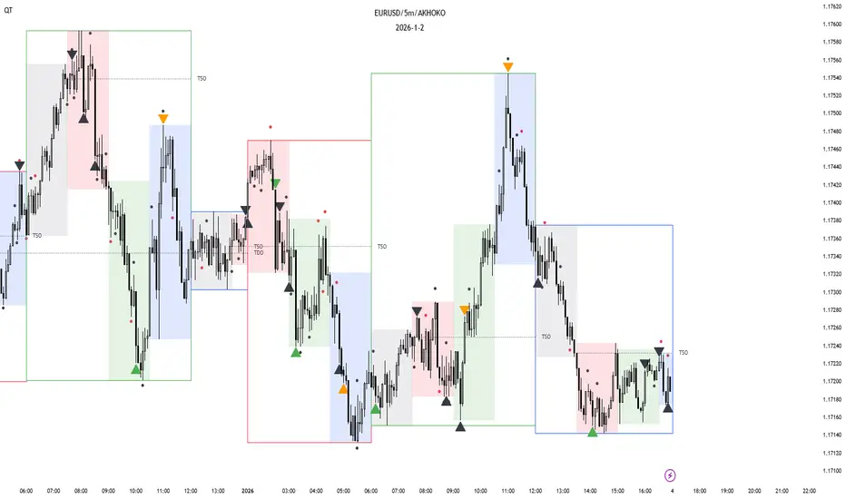 QT is a multi-layer, cycle-aware market structure indicator that consolidates several core logics into a single, clean overlay:
