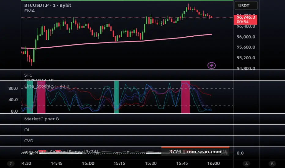 Indicator is Combining 4 different timeframe Stochastic RSI and show buy signal when all of them are oversold and sell signal when all of them are overbought.