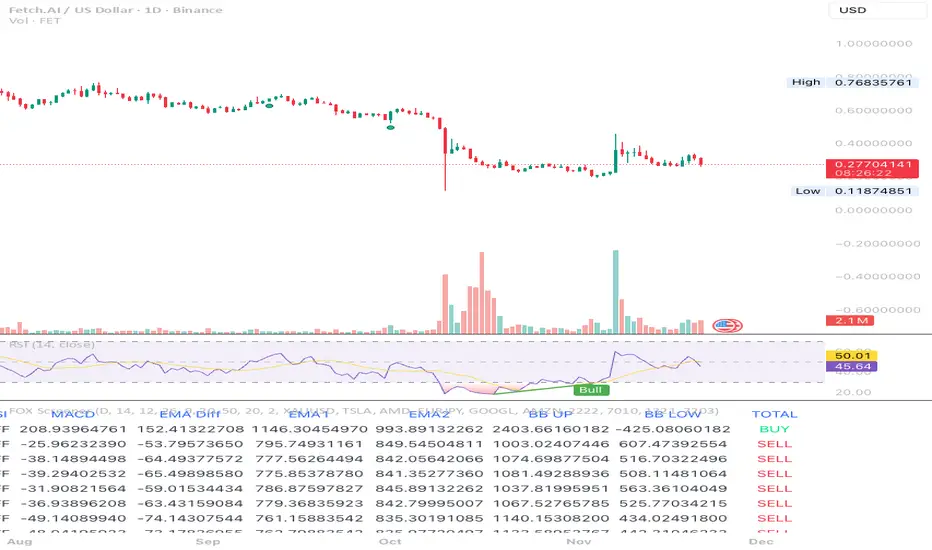FOX Screener is a multi-indicator market scanner designed to analyze up to 10 symbols simultaneously and display their technical conditions in a clean, real-time table. It helps traders quickly identify bullish, bearish, and neutral setups based on a combined signal system.