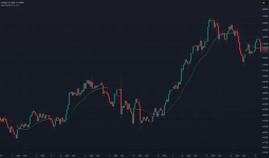 After building SuperBands, I kept thinking about what happens at the midpoint between those two volatility-adaptive envelopes. The upper and lower bands are both trailing price based on ATR and EMA smoothing, but they're operating independently in opposite directions. Taking their average seemed like it might produce an interesting centerline that adapts to volatility in a way that regular moving averages don't. Turns out it does, and that's what this indicator is.