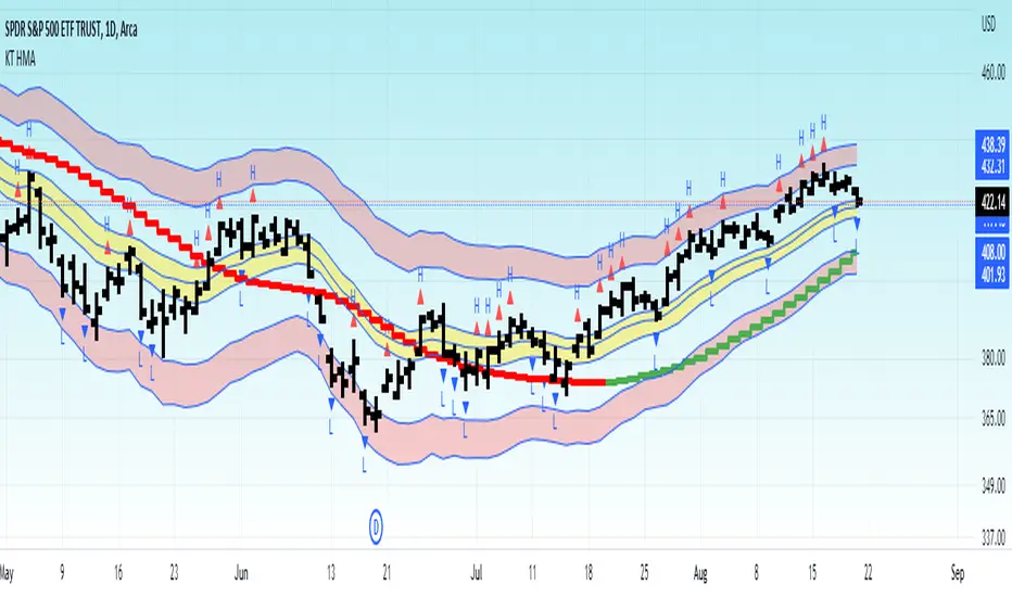 HMA : Green/Red >> Shows current trend. Using HMA to emphasize on recent price points rather than older one.