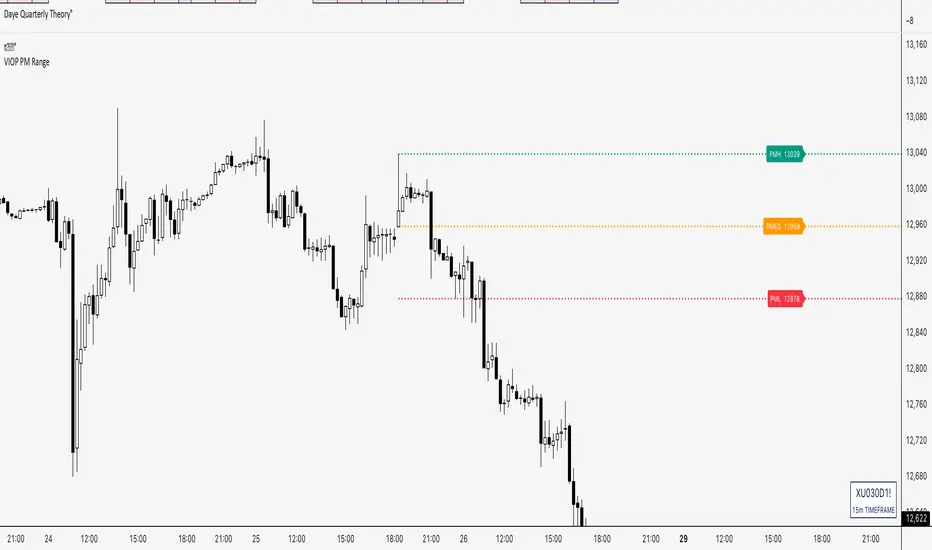 This indicator plots VIOP Pm session High - Low and EQ levels