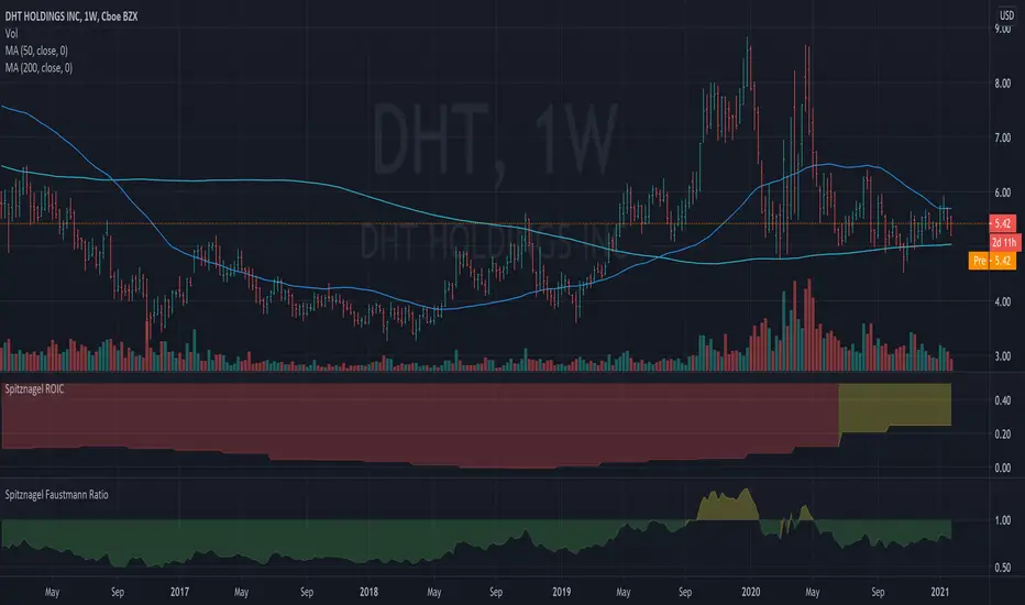 This is a rough version of the Faustmann Ratio metric that Mark Spitznagel presents in The Dao of Capital. The purpose is to conservatively calculate the price of the company (market cap) relative to net worth. Over a medium term horizon, the theory is that companies which have a high ROIC (see my other script) combined with a low Faustmann Ratio (color coded to give you a rough idea) should generally outperform. Please don't take this short summary as an excuse to not read the full book. It's well worth your time. (I am not affiliated with the author in any way.)