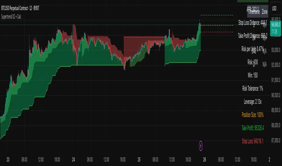 Size Calculator is a risk management tool that helps traders position themselves intelligently by calculating optimal position size, stop loss, and take profit levels based on account capital, ATR volatility, and personal risk tolerance. It takes the guesswork out of sizing so you can focus on execution.