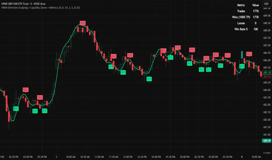 HMA Direction Scalping + Liquidity Zones + Metrics