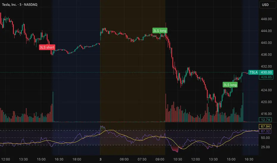 Bullish Three Line Strike (green “3LS long” above the candle):