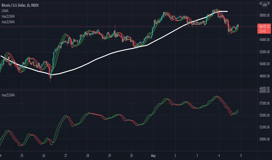 **Overlay Version** Macd that shows instantaneous trend using ZLSMA. This crossover has the ability to reveal trend directions before it happens. With multi time frame option.
