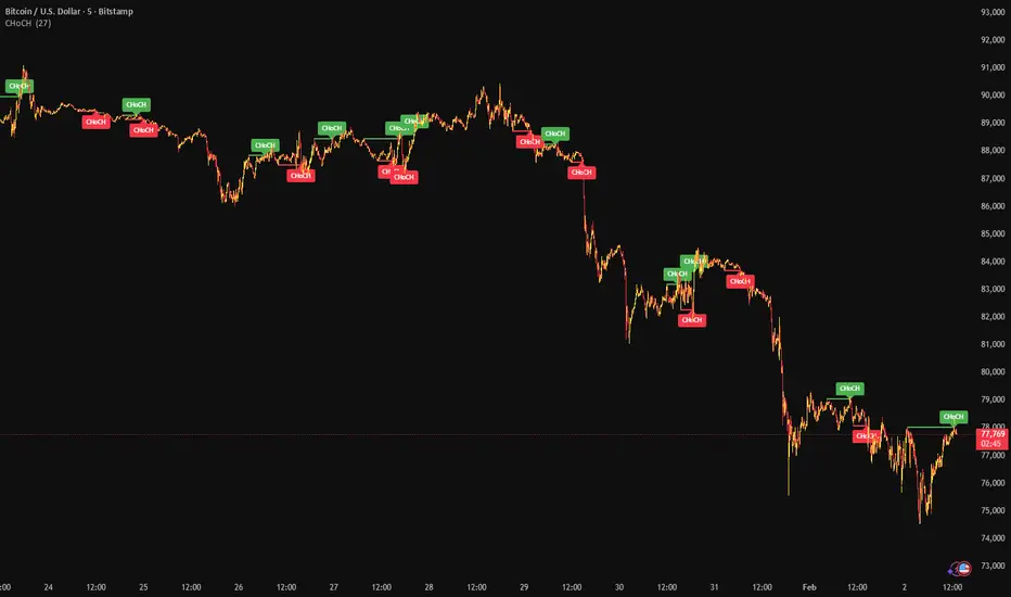 This indicator detects Change of Character (CHOCH) in market structure, helping you spot early trend reversals and momentum shifts.