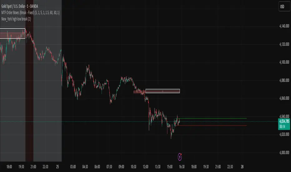 The "NY HIGH LOW BREAK" indicator is a powerful TradingView script designed to identify and capitalize on breakout opportunities during the New York trading session. This strategy focuses on the initial price action of the New York market open, looking for clear breaches of the high or low established within the first 30 minutes. It's particularly suited for intraday traders who seek to capture momentum-driven moves.