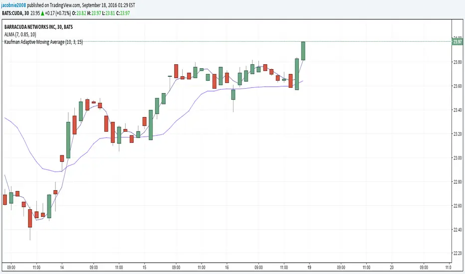 "Developed by Perry Kaufman, Kaufman's Adaptive Moving Average (KAMA) is a moving average designed to account for market noise or volatility. KAMA will closely follow prices when the price swings are relatively small and the noise is low. KAMA will adjust when the price swings widen and follow prices from a greater distance. This trend-following indicator can be used to identify the overall trend, time turning points and filter price movements."