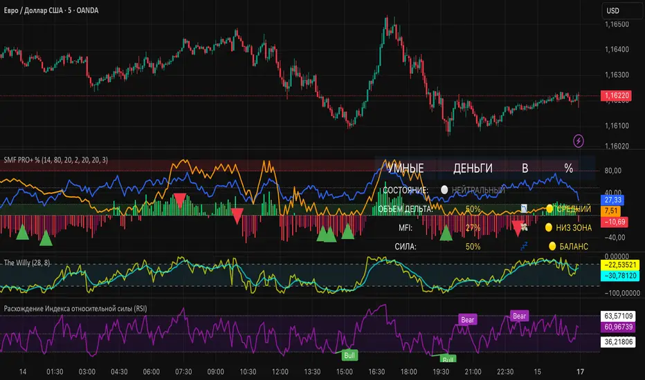 This advanced indicator combines volume analysis, money flow, and smart money detection to identify high-probability trade setups. Perfect for traders who want to follow institutional money flow.