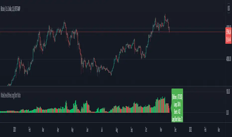Shows the long/short ratio (amount of longs per short) on ANY Bitfinex pair (BTCUSD, ETHUSD, ADAUSD, ...).