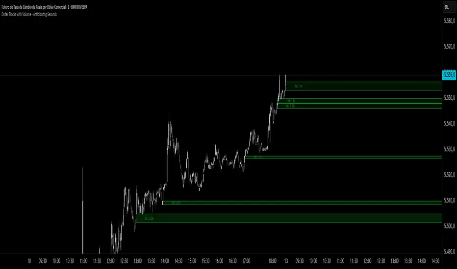 Anticipated Entry: The script predicts order blocks ahead of time using smaller intervals (like 10, 20, or 30 seconds) by converting these into bars, anticipating breakouts before they appear on the 1-minute chart.