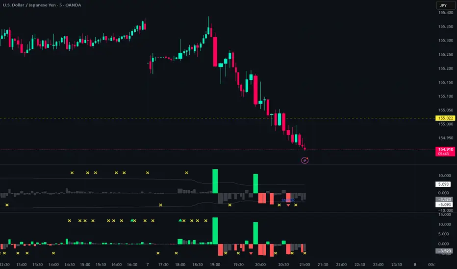 Description for Publishing:Title: Unified Physics: The Scalper [Velocity Edition]Description:This edition of the Unified Physics system is tuned for High Velocity markets. Unlike trend-following tools that wait for confirmation, The Scalper executes on the immediate derivative of price acceleration ($F=ma$).The Strategy:Entry: Triggers the moment "Positive Force" enters the market (Green Histogram) aligned with the macro trend (200 SMA).The Velocity Exit: This script features a hyper-sensitive exit algorithm. It signals an exit (Yellow X) the instant momentum begins to decelerate (1-bar fade).Goal: Capture the impulsive "pop" of a move and exit before any retracement occurs. High win rate, quick turnover. Recommended for 1H or lower timeframes.Copyright © 2025. All Rights Reserved. Proprietary Physics Engine.