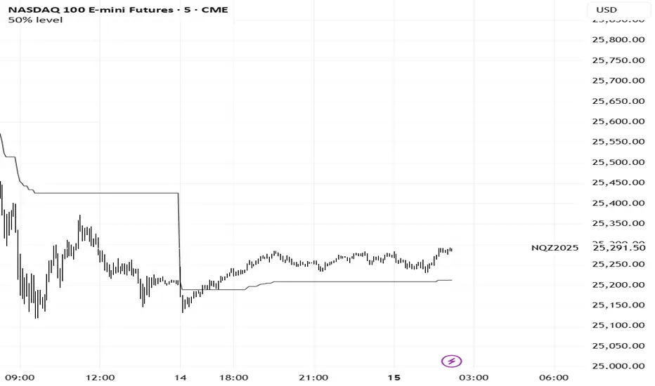 The 50% or midpoint between the current days highest and lowest points be used to divide the premium and discount of the days range. Price often reacts at this point and it can be used as a target for reversal trades. This indicator plots the level as it moves through out each day so is useful for backtesting as well as determining whether the current price is in premium or discount.
