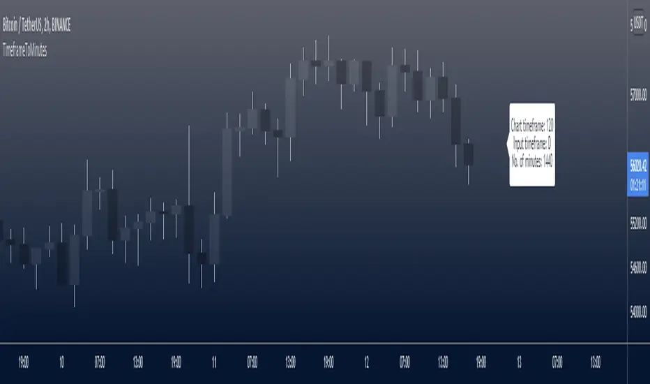The timeframeToMinutes() function returns the number of minutes in an arbitrary timeframe string.