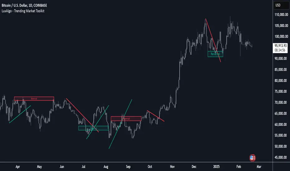 The Trending Market Toolkit focuses exclusively on trending market structures and high-confluence, high-risk-to-reward entry models. It is designed to complement discretionary trading by offering different entry strategies based on market structure.