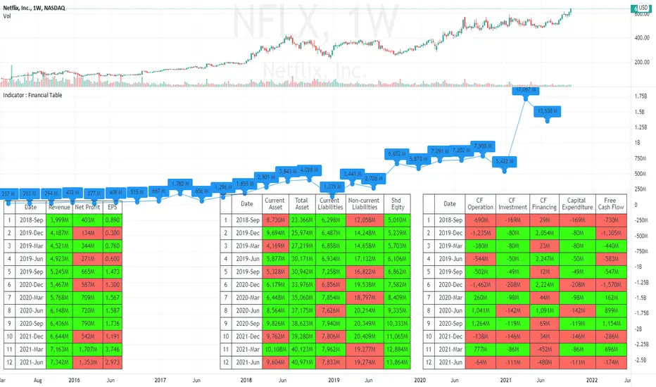 Financial table is the table shows the finanacial data over period of time (Quartery : FQ, Annually : FY).