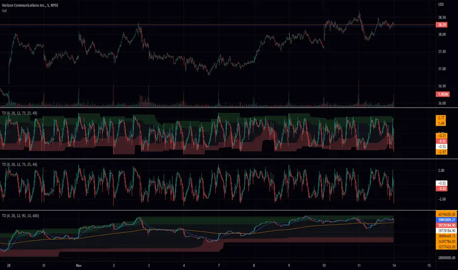 This is an indicator that shows the inflow and outflow of volume into a financial instrument. Volume is likely one of the most underrated source of data in trading unfortunately so there seems to be a lack of studies on it. The size of the candle is related to the strength of the move. The calculations for this are: cumulative sum of +volume if open < close OR -volume if open > close. I have added percentile bands so you know where the neutral zones and strong zones are. Interestingly you can also see what the volume is doing by watching where the neutral zone is. If the volume is in the red or green it is a strong move. This is standardized to make it more useful. Now you can see where the exhaustion points are on the short term. Dont forget you can change the settings and you wont die. Thank you for your interest in this release I hope you find great piles of money with it.