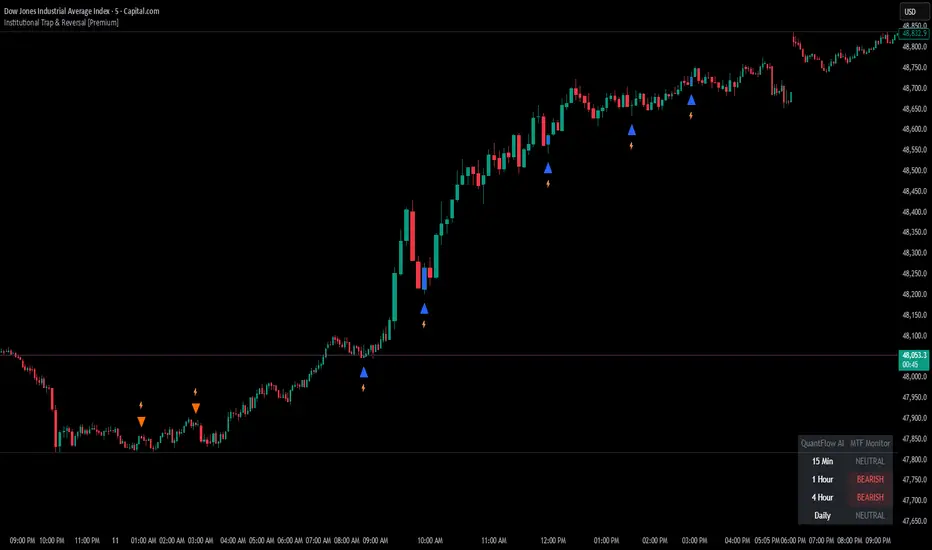 d. Key Feature: "Includes Multi-Timeframe Trend Monitor (MTF) to align your entries with the 15 M, 1H, 4H, and Daily flow."