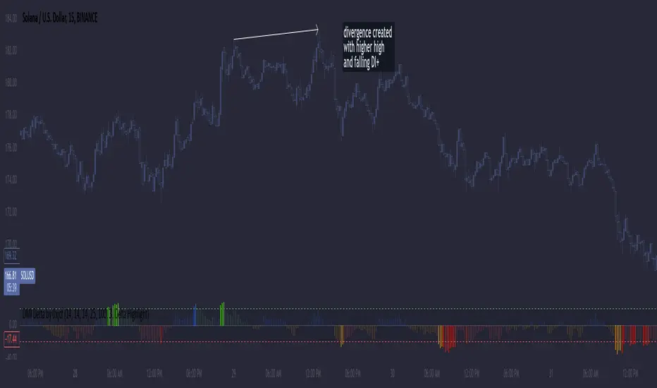 - Entry and Exit Signals: Use this indicator in conjunction with price action. Divergences between the price and DMI Delta histogram can reinforce entry or exit decisions.