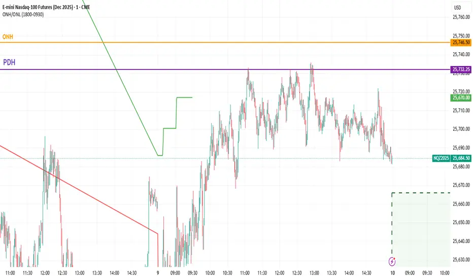 At the start of the regular trading session (RTH), ONH and ONL levels remain on the chart as key liquidity zones.
