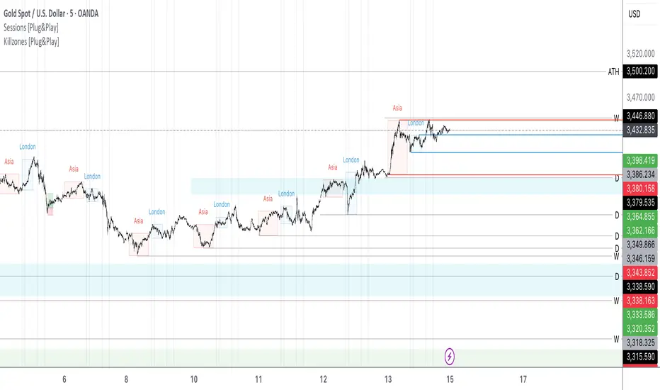 Highlight the most important institutional trading hours with precision.The Killzones indicator automatically plots vertical lines to mark the key “Killzone” windows each day — London (08:00–09:00) and New York (15:00–16:00), shown in UK time. These timeframes represent periods of high volatility, where smart money activity is most likely to create the day’s major moves.