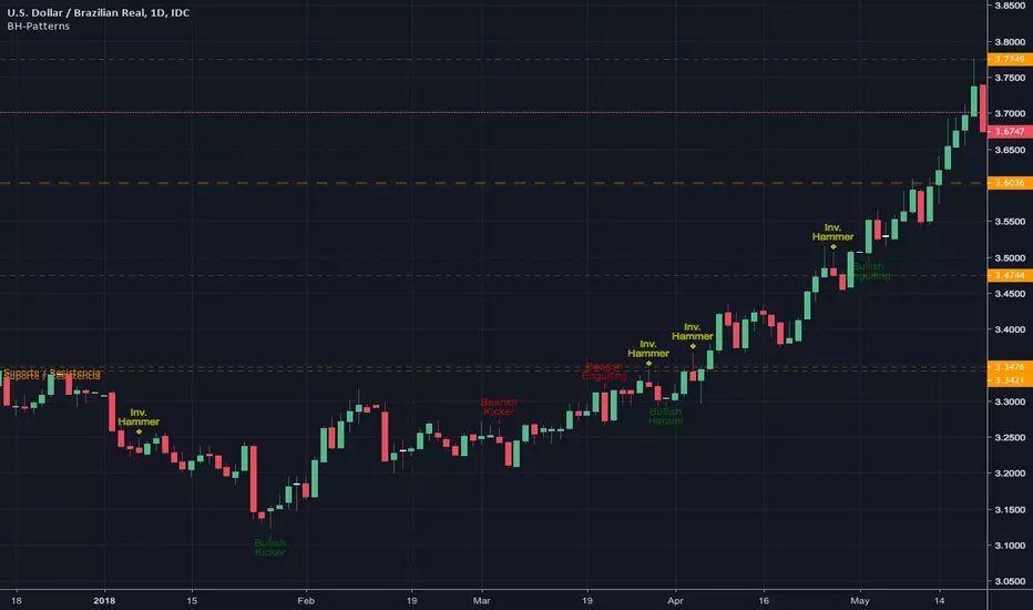 This is a script to help the beginners locate the candle patterns. It has a nice code that can be used in other scripts too. Easy to use with separated functions, simple patterns and complex patterns detections.