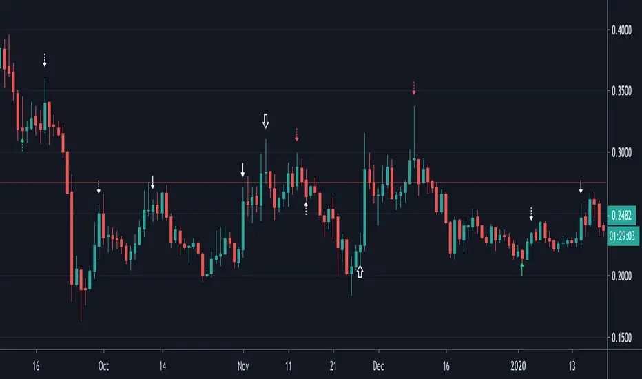 Each Bar checks an amount of Bars at the Left (="History") and Bars to the Right (="Future"), insuring this particular Bar is the Highest or Lowest of them all at "close",