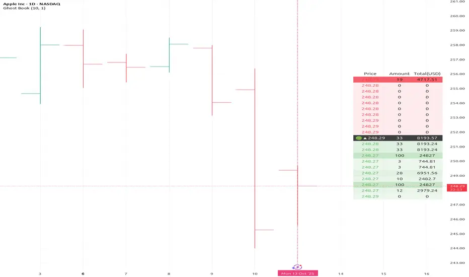 Ghost Book is an indicator that visualizes the distribution of bid and ask amount — the activity of buyers and sellers — in the form of a synthetic order book.