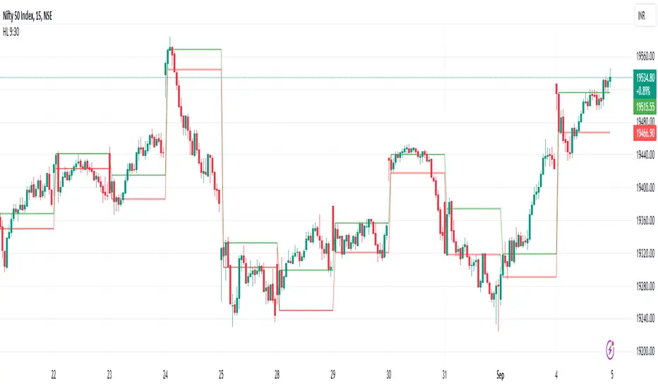 The "High and Low of 9:30 Candle" strategy is a simple trading strategy commonly used in the stock market and other financial markets. It involves using the price range (high and low) of the first candlestick that forms at the opening of a trading session, typically at 9:30 AM, as a basis for making trading decisions. Here's a description of this strategy: