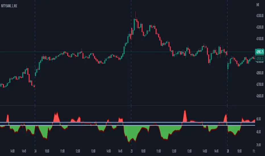BANKNIFTY spot chart and ideally on a 5 min Time frame. Do not use this alone but use it best with Price Action. Also ignonre this indicator values on sudden spike candles, wait for the PA and indicator behaviour to take the trade.