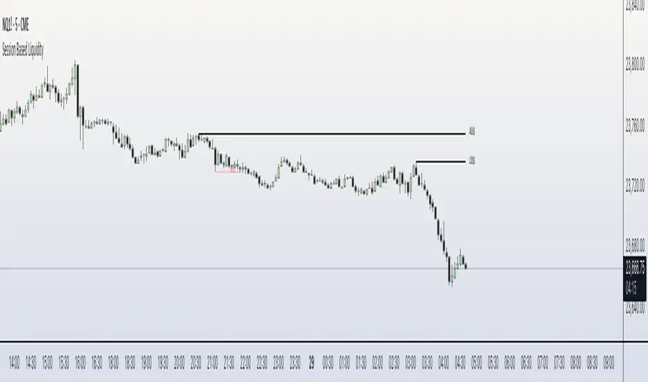 The Session Based Liquidity indicator is a comprehensive educational tool designed to help traders understand and visualize liquidity concepts across major trading sessions. This indicator identifies Buy-Side Liquidity (BSL) and Sell-Side Liquidity (SSL) levels created during Asia, London, and New York trading sessions, providing insights into institutional order flow and potential market reversal zones.